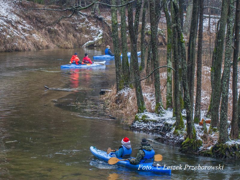 Zimowy spływ kajakowy na Czarnej Hańczy, czyli zimowa aktywność z wiosłem w ręku.